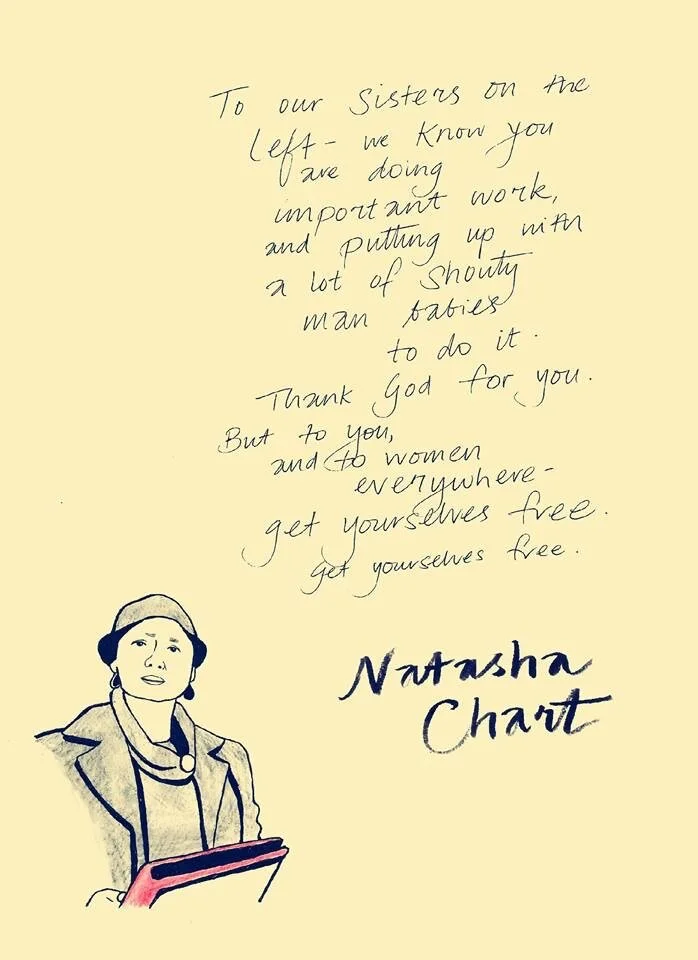 Image: Drawing of Natasha Chart speaking outside of the Human Rights Campaign, by Renee Gerlich.